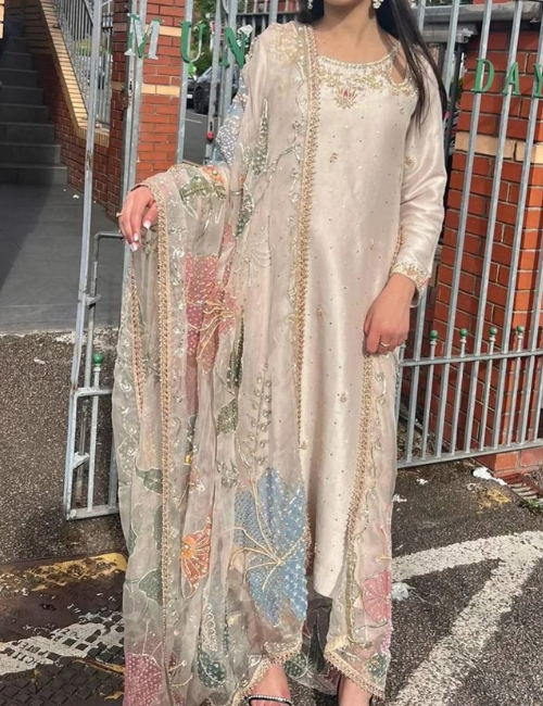 Our clothes feature high-quality materials like silk, chiffon, georgette, velvet, cotton (lawn, cambric), linen, and khaddar. Material details are on each product page.
